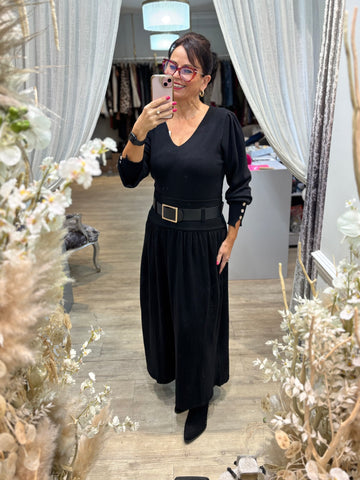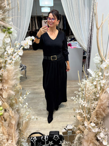 A soft knitted skirt with a deep waistband with belt loops. Its a lovely weight so hangs beautifully.