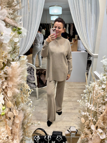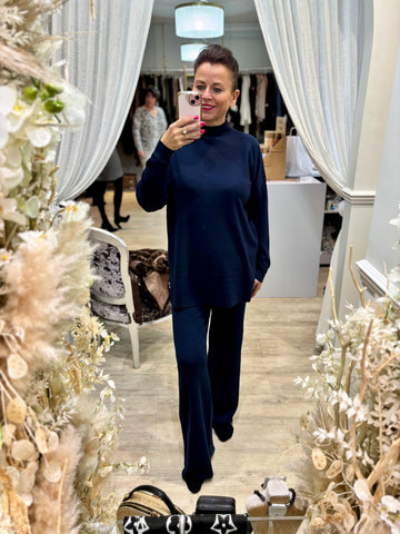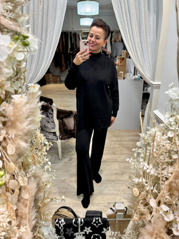 A dressy set that's good enough to wear out. Great for dinner with friends or lounging at home. Fits up to a size 14.