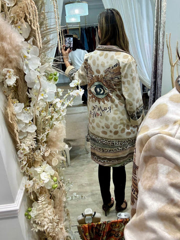 A striking new arrival that feels absolutely stunning to wear. We think it's best on a 12-16. All over print.