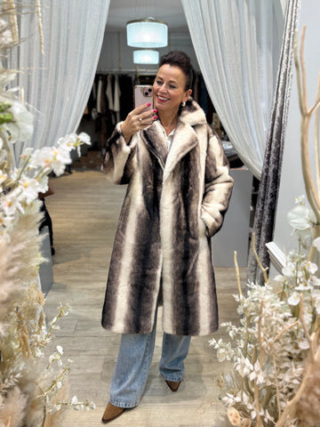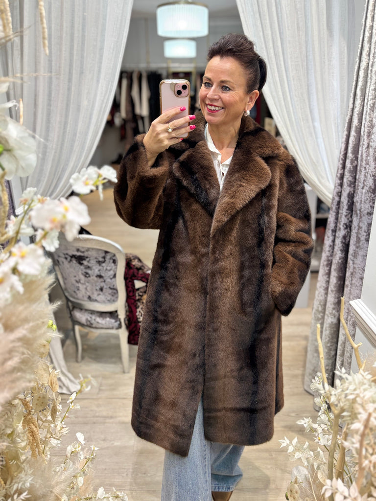 A luxurious long faux fur coat with embellished fastenings. Fits a 12-16.