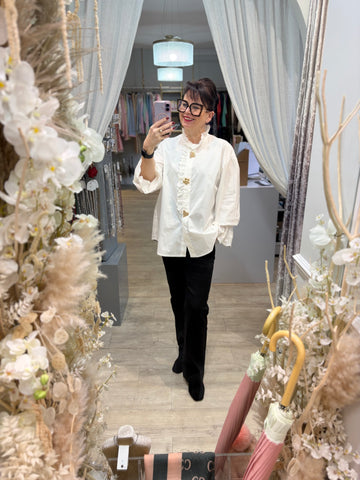 A pretty broderie anglaise edging to this blouse, with an elasticated cuff too. Fits a 16-22